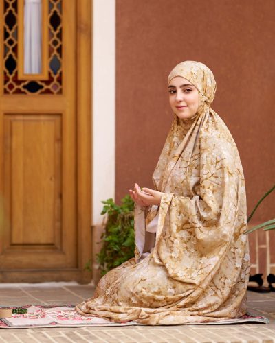 چادر نماز رنگی طرحدار پارچه کُدَری زمینه شکلاتی کد CH 017