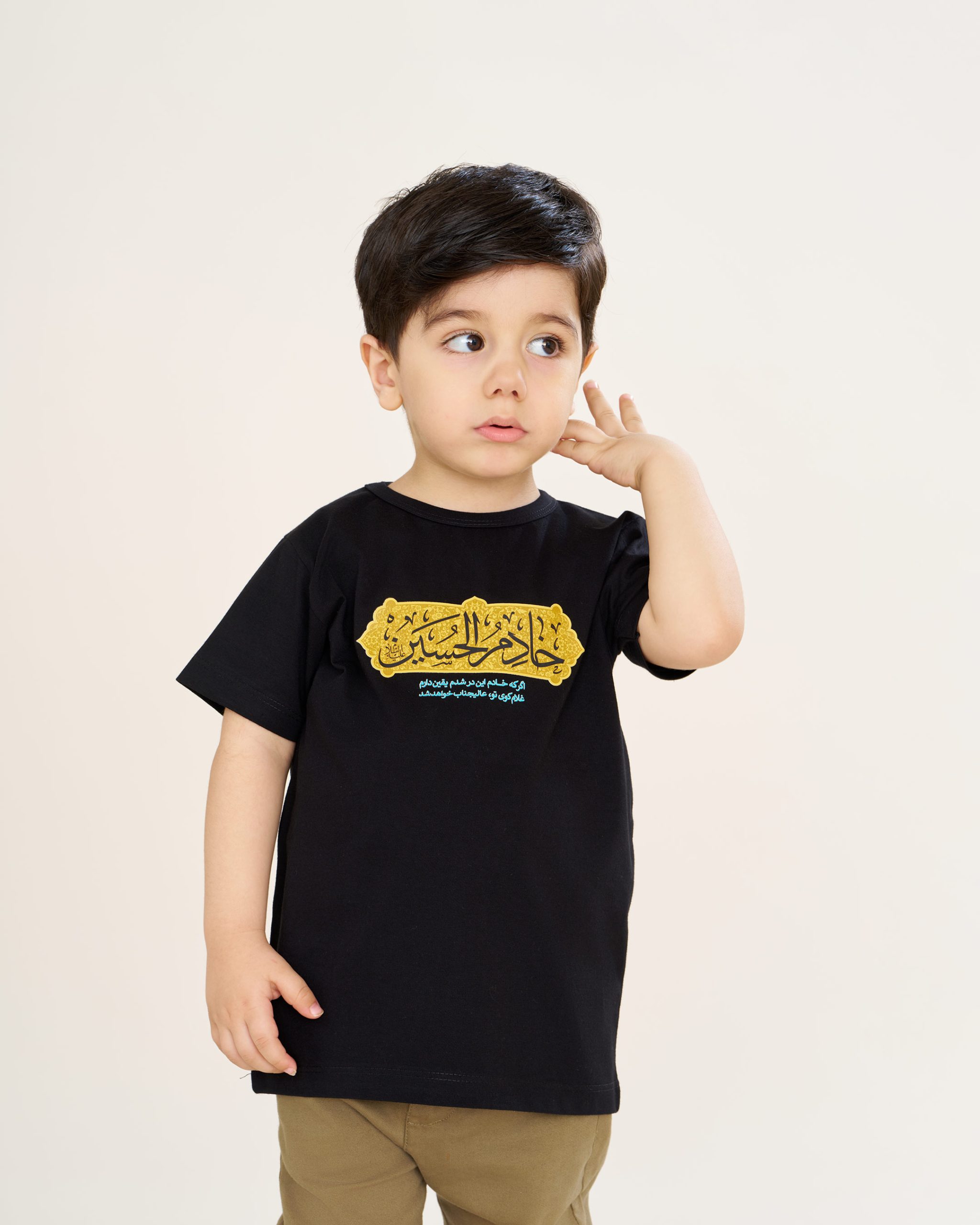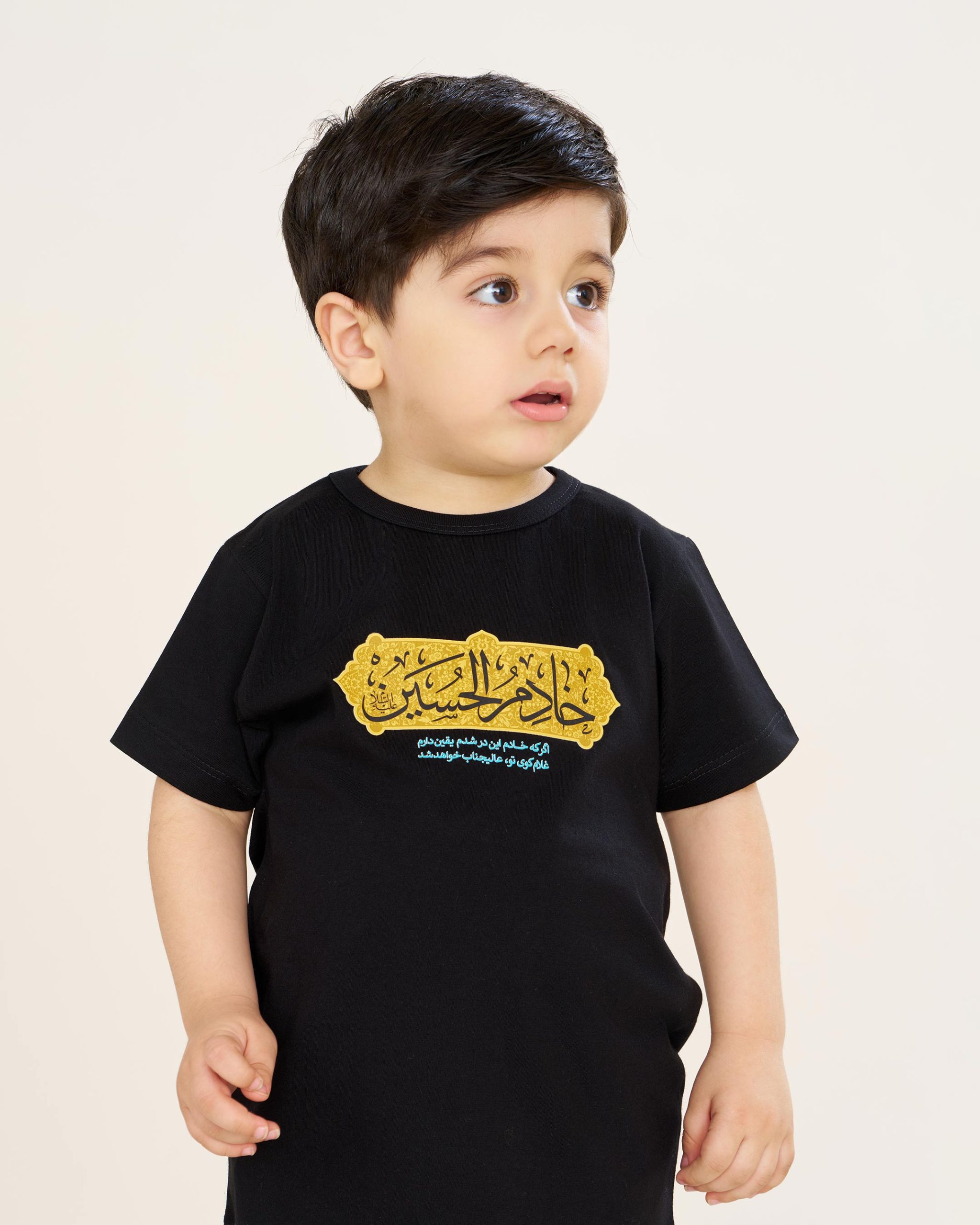 تیشرت مشکی آستین کوتاه چاپی با ذکر شریف “خادم الحسین” کد TB11022 از مجموعه سَفینَةُ النَجاة