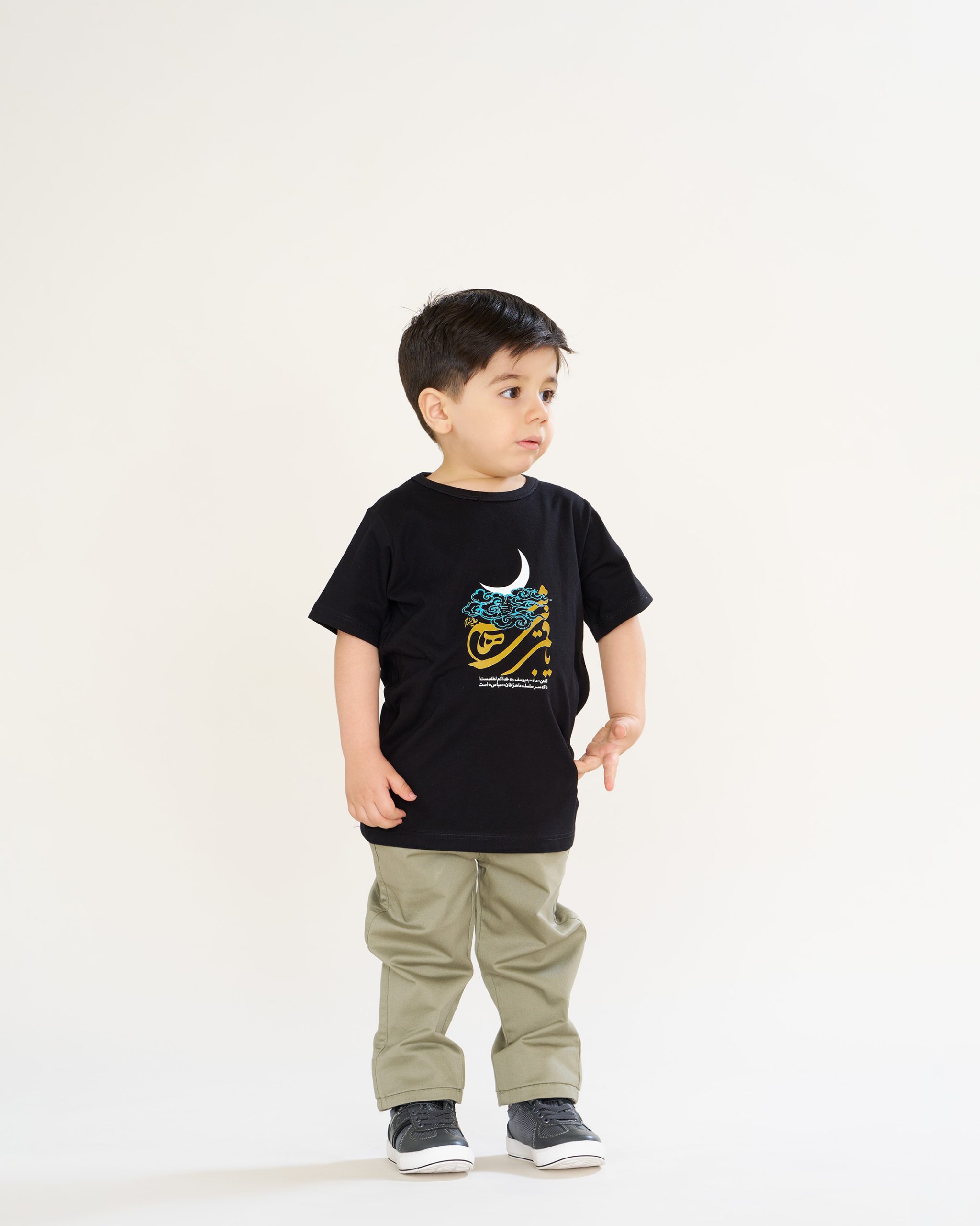 تیشرت مشکی آستین کوتاه چاپی با ذکر شریف “یا قمر بنی هاشم” کد TB11029 از مجموعه سَفینَةُ النَجاة