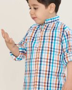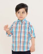 پیراهن بچه گانه یقه دیپلمات آستین بلند چهار خانه کد PB12090