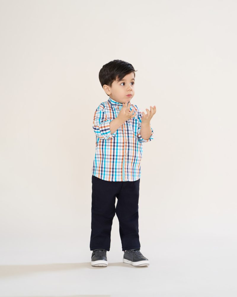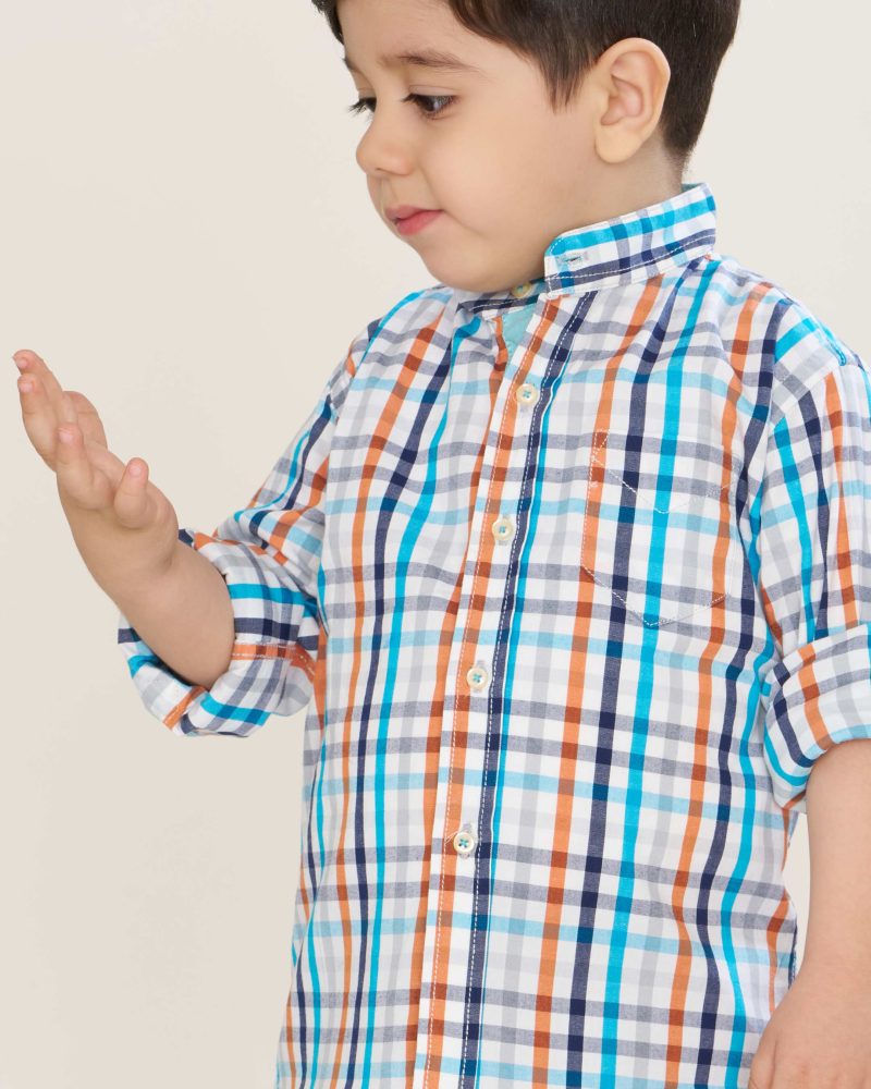 پیراهن بچه گانه یقه دیپلمات آستین بلند چهار خانه کد PB12090