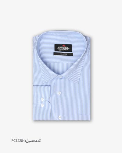 پیراهن تترون یقه انگلیسی کلاسیک راه راه زمینه سفید آبی کد PC12284