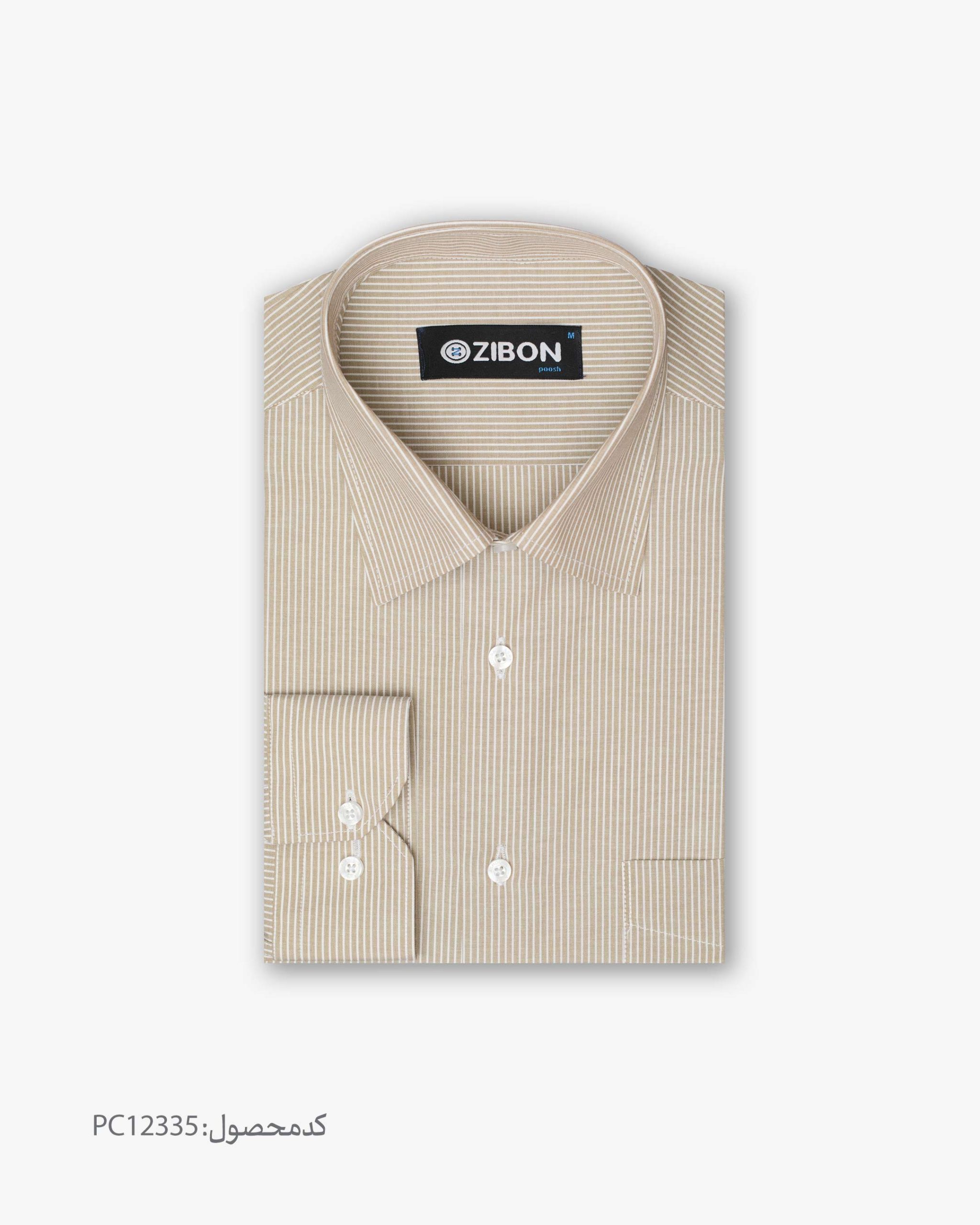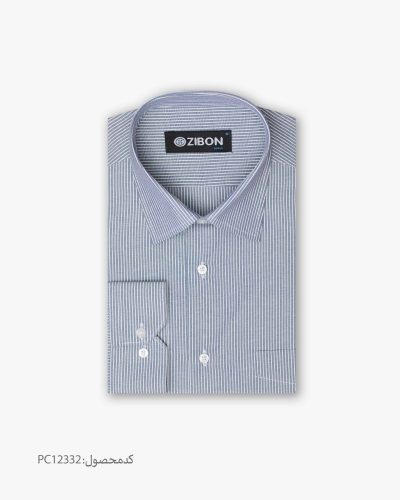 پیراهن تترون یقه دیپلمات کلاسیک راه راه زمینه طوسی کد PC12132