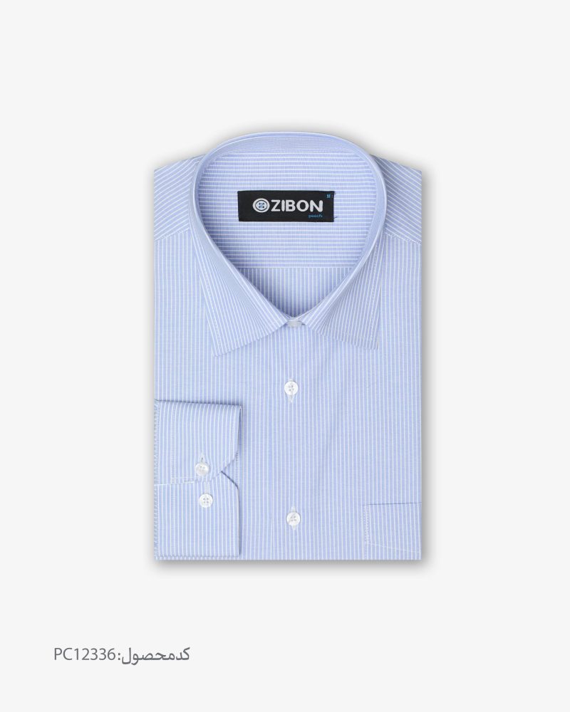 پیراهن تترون یقه انگلیسی کلاسیک راه راه آبی سفید کد PC12336