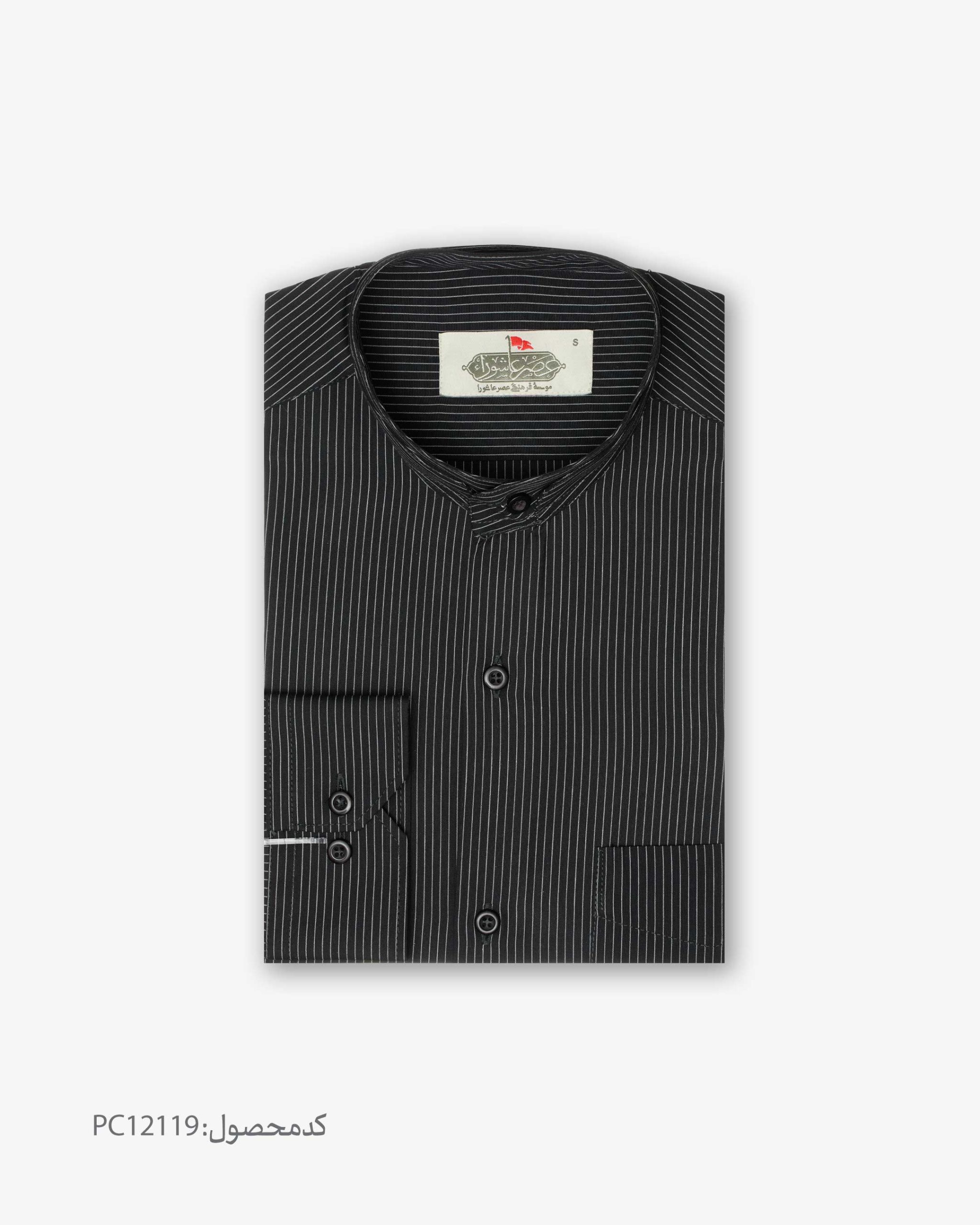 پیراهن تترون یقه دیپلمات کلاسیک راه راه زمینه مشکی کد PC12119