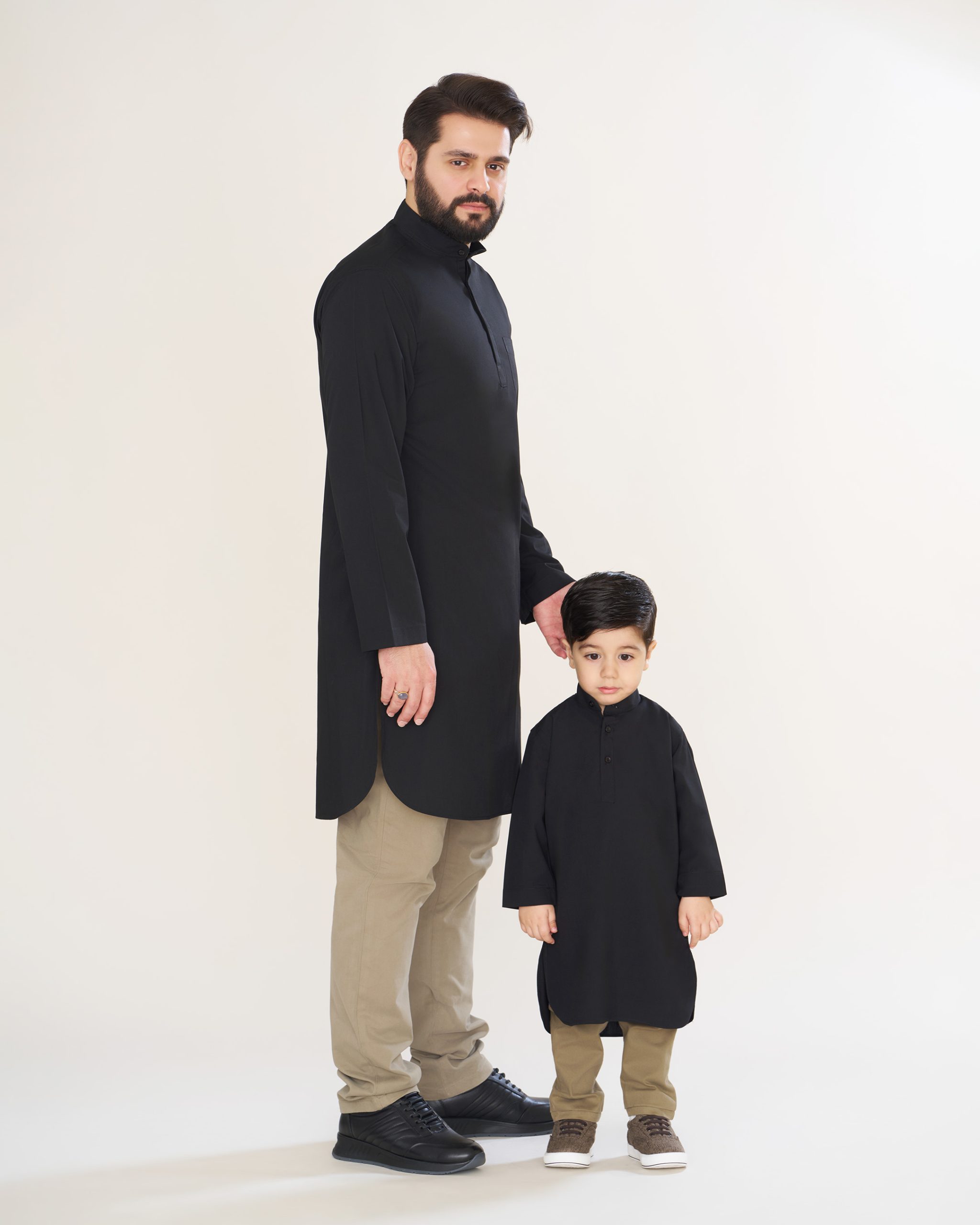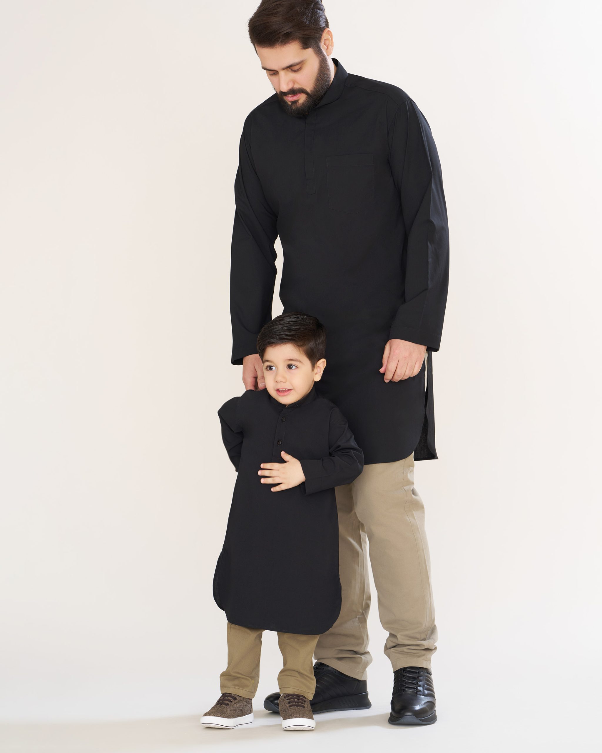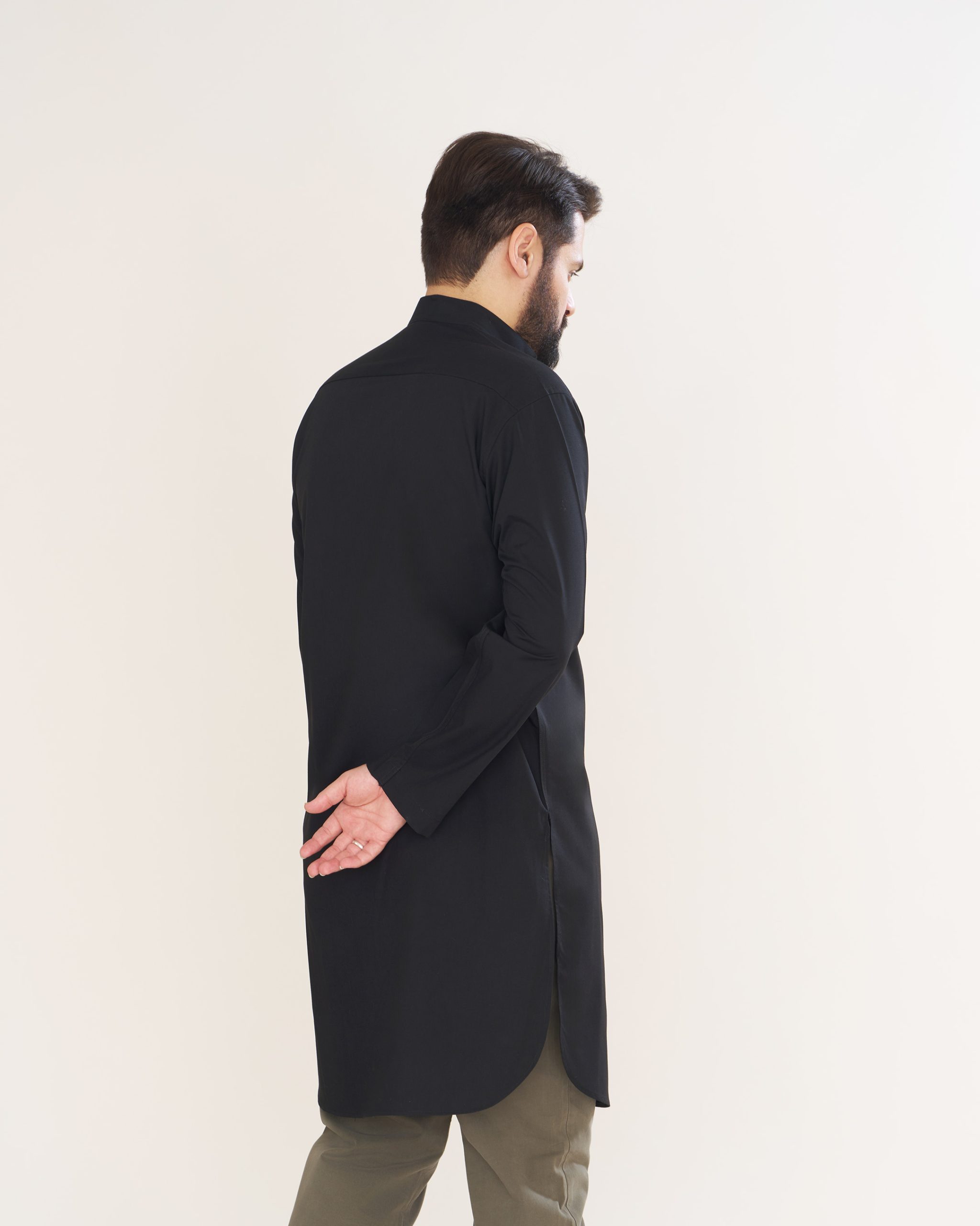 پیراهن پاکستانی مشکی یقه آخوندی آستین بلند مردانه کد PM22001