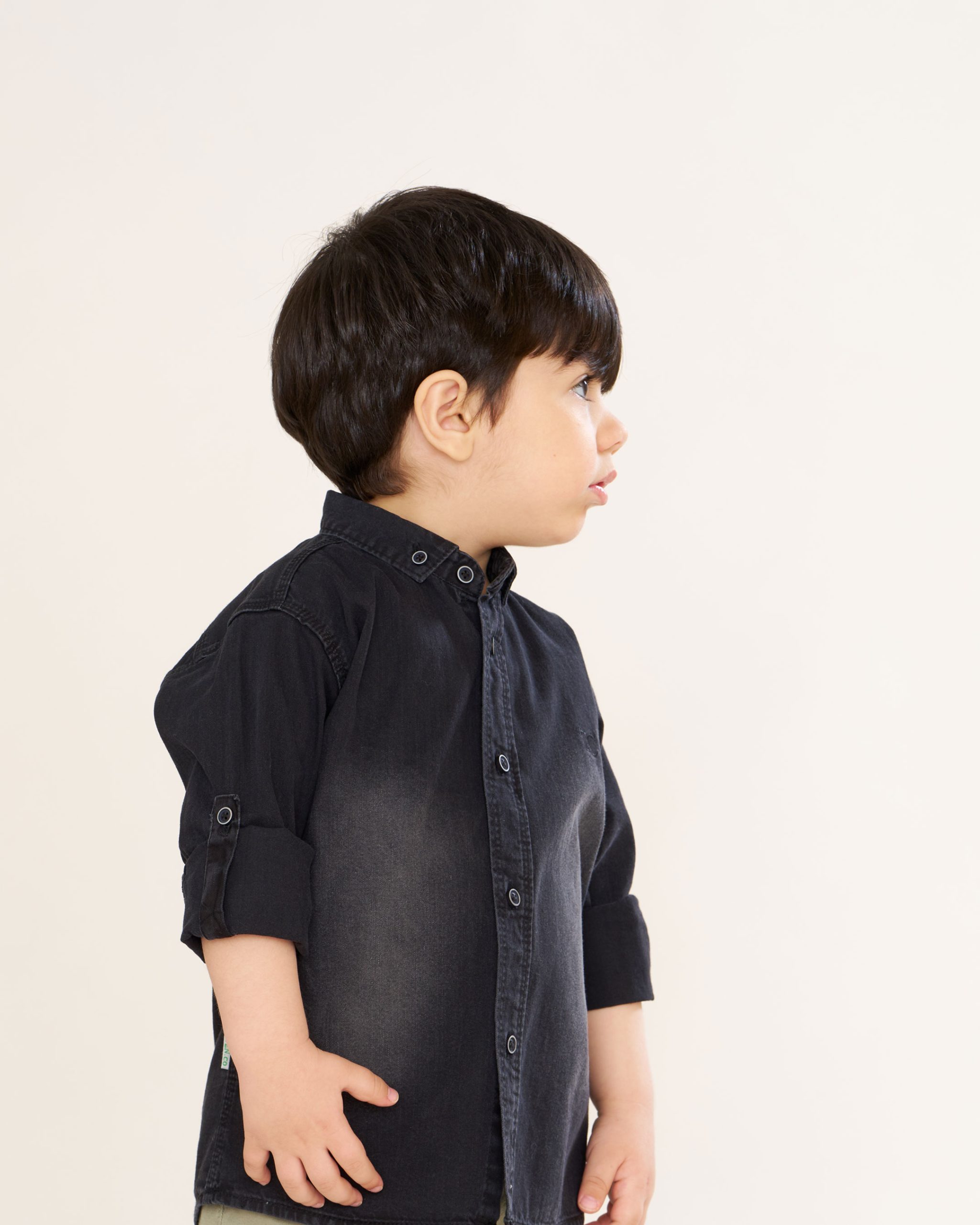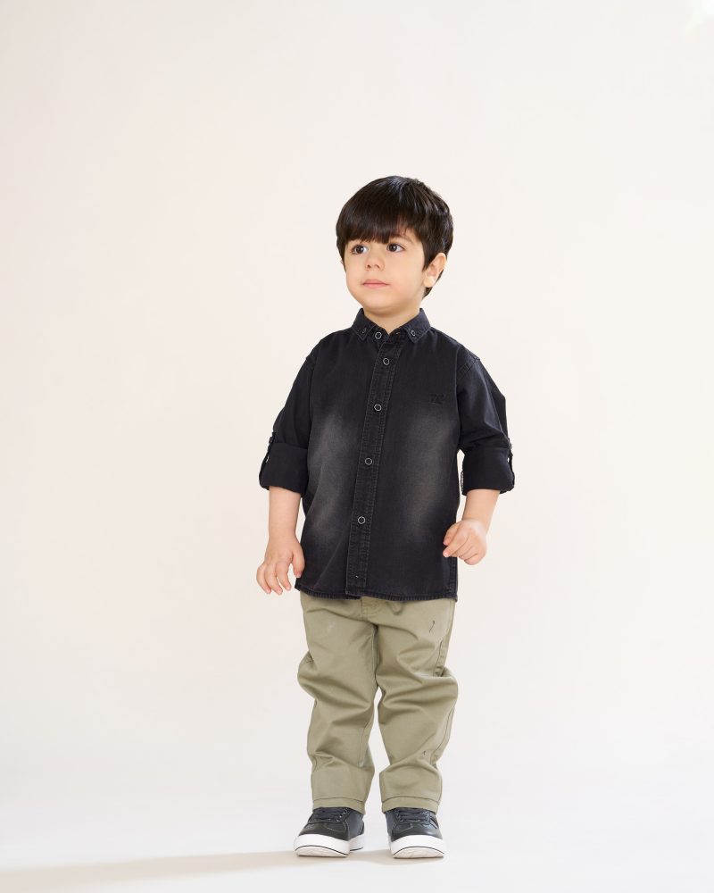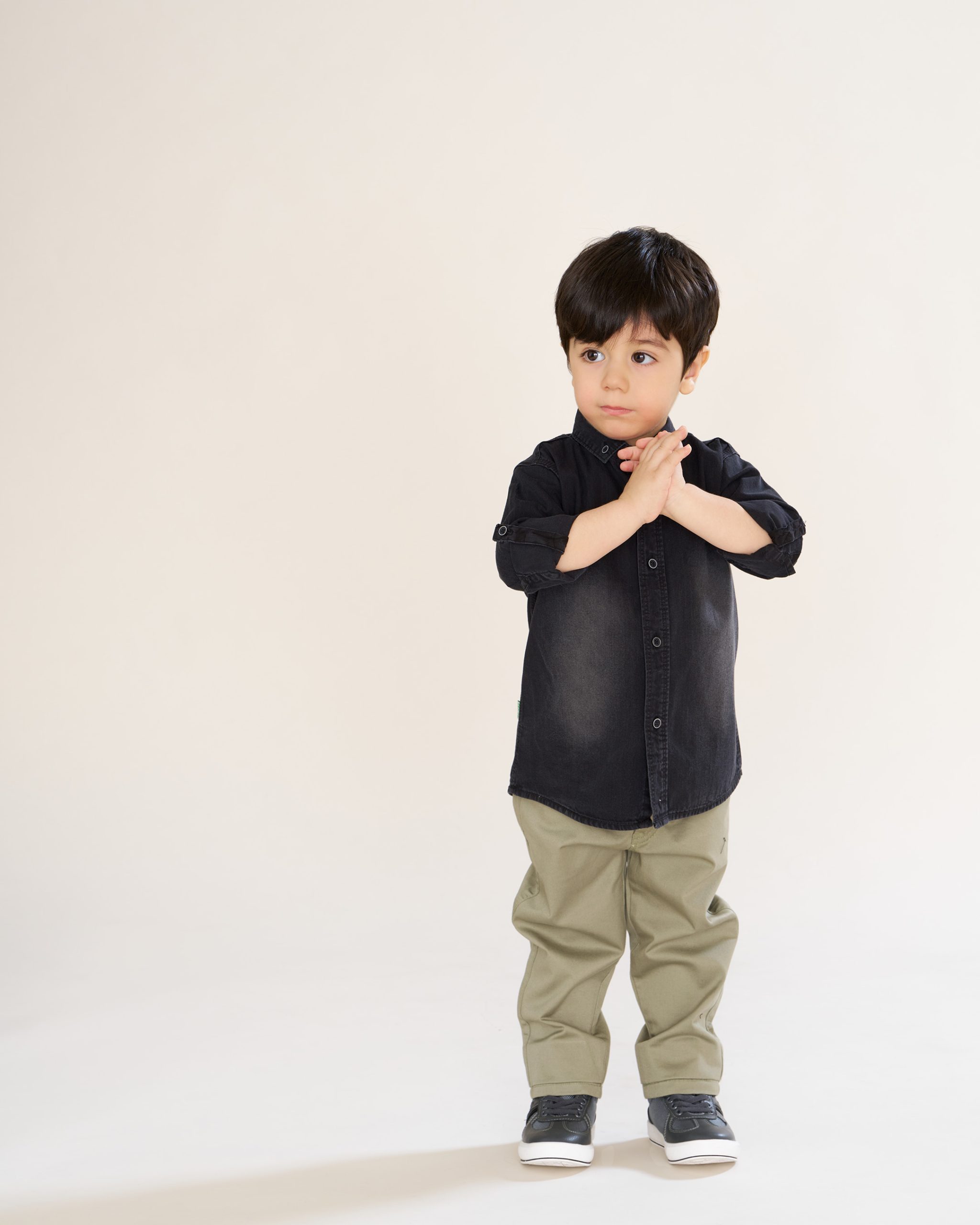 پیراهن یقه انگلیسی مشکی آستین بلند پارچه لی سنگشور بچه گانه PB12074