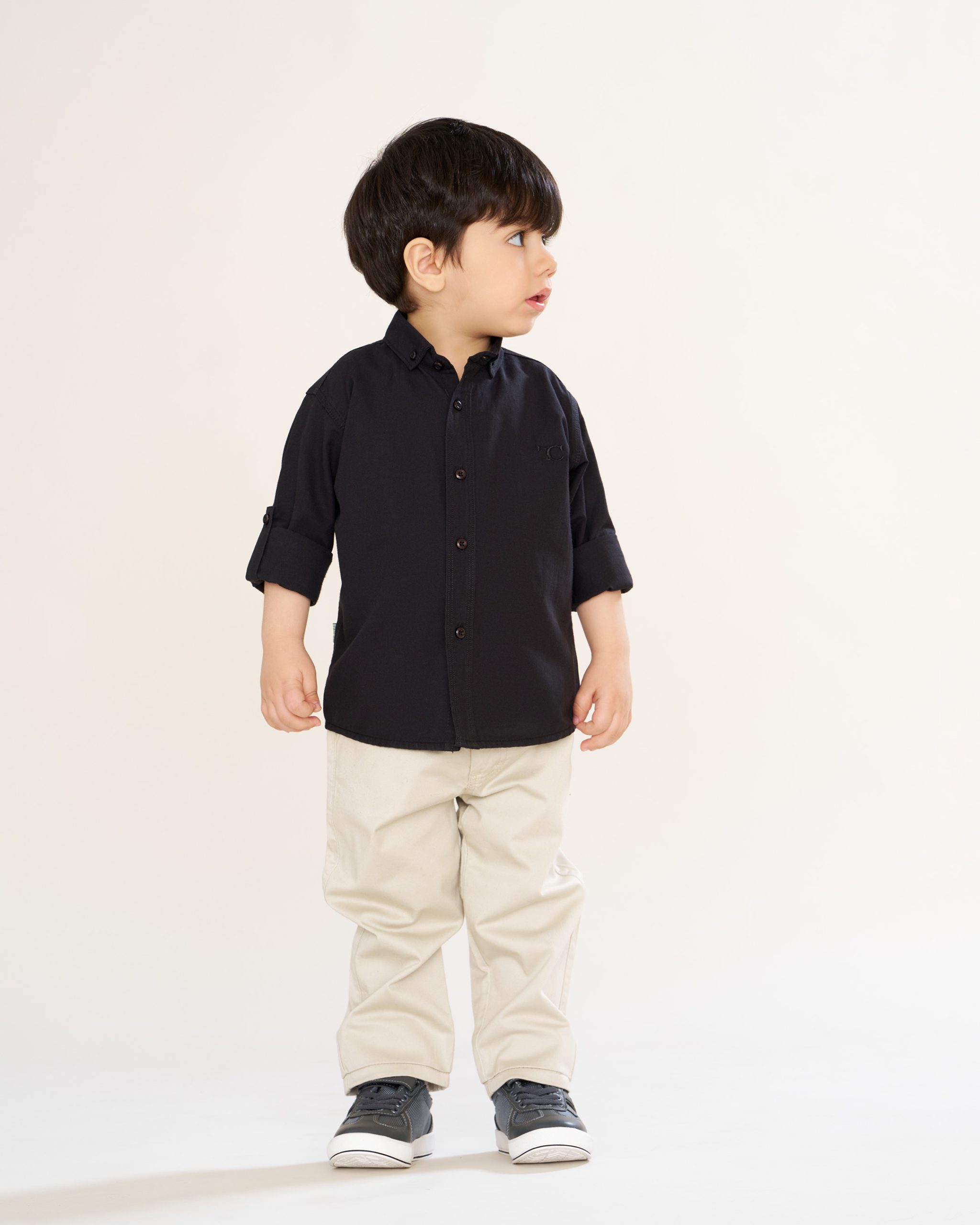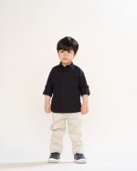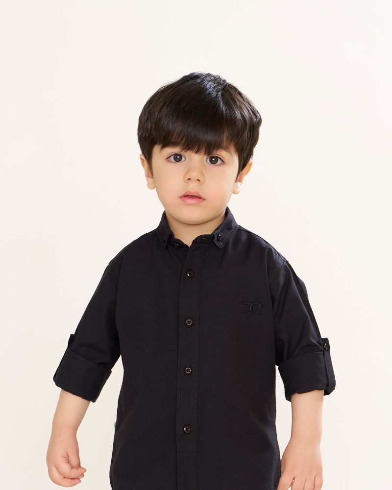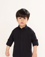 پیراهن یقه انگلیسی مشکی آستین بلند پارچه شومره بچه گانه PB12075
