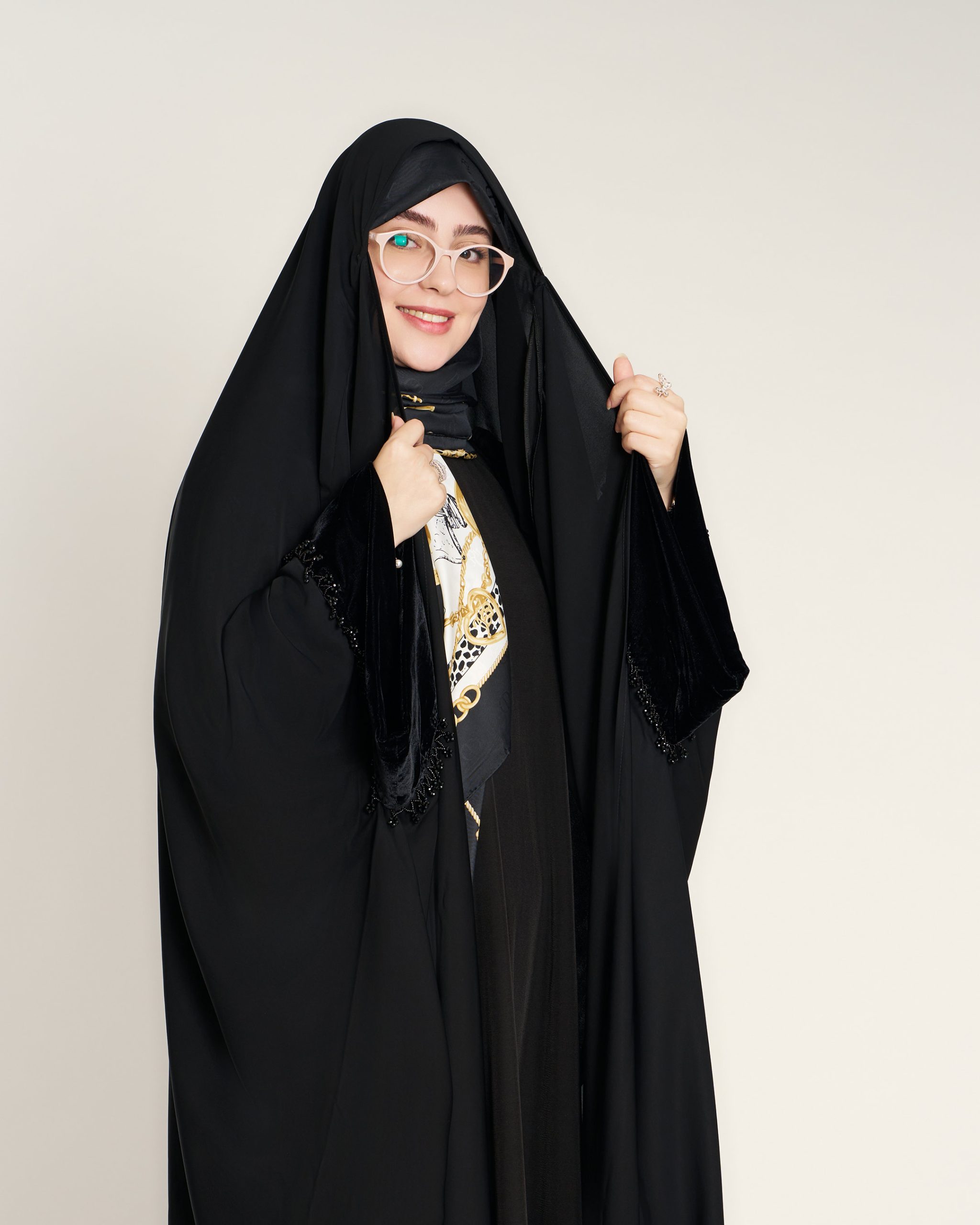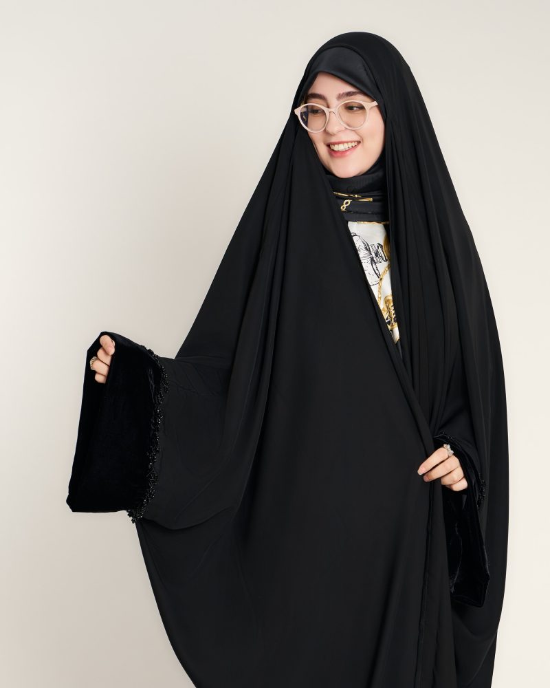این چادر بر اساس الگوی اصیل عربی دوخته شده؛ الگویی که بهخاطر نوع برش و فرم خاصش، بهزیبایی روی سر و شانهها مینشیند و با هر قدم، موجی آرام و موقر در اطراف شما ایجاد میکند.