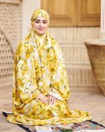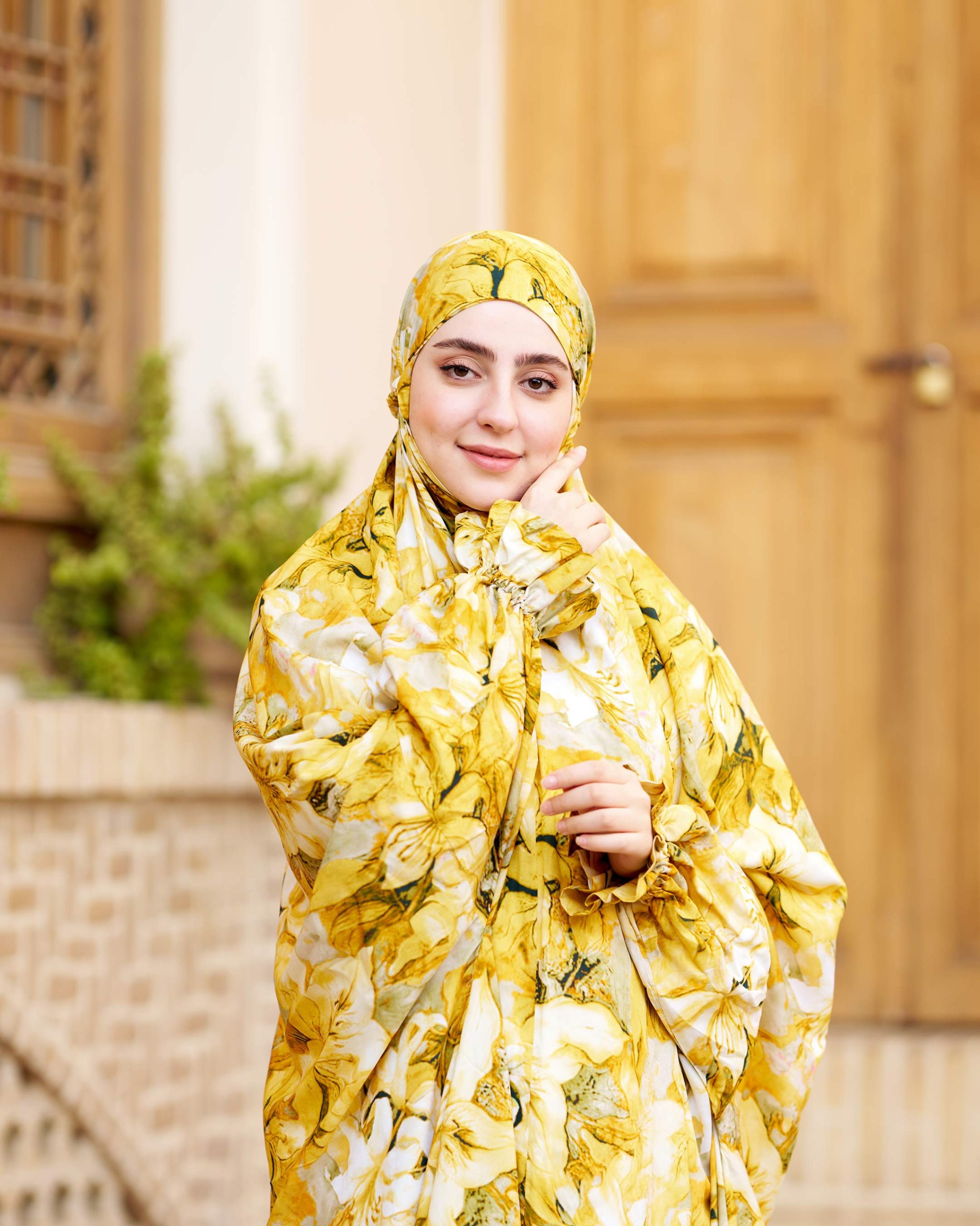 چادر نماز رنگی طرحدار پارچه کُدَری زمینه زرد کد CH 012